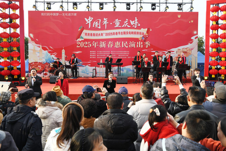 《新春惠民献演》2025年2月4日,重庆市南岸区南滨路,重庆市歌剧院的艺术家们正为市民倾情演出。