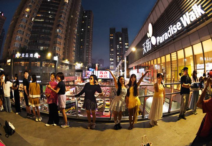 《游客青睐“我在重庆”》2025年5月1日晚,重庆两江新区观音桥,“我在重庆”广告牌,已成为来自各地游客们的热门打卡地之一。