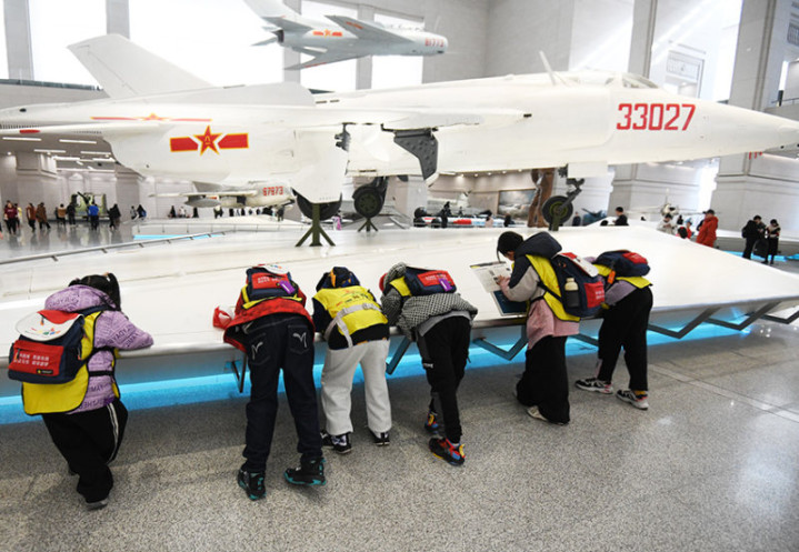 《游览军博》2025年2月18日,北京中国人民革命军事博物馆内,一群来自吉林省的儿童在参观中认真做着笔记。