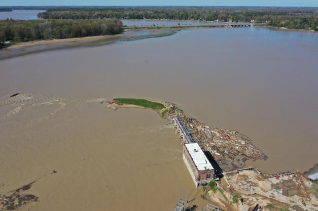 ▲2020年5月,美国密歇根州一座决堤的水坝